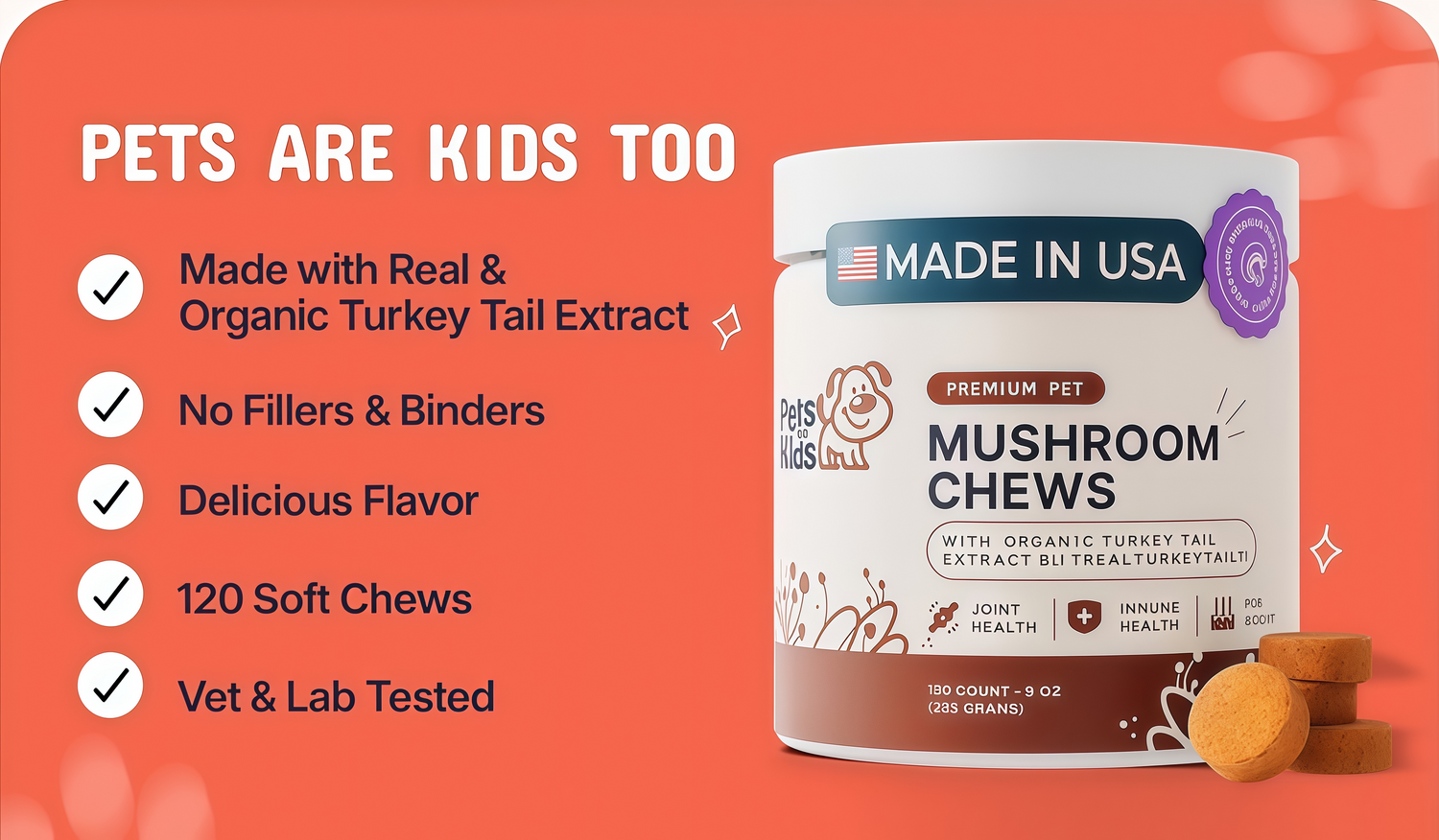 Dog Mushroom Chews are made from natural ingredients, and side effects are rare. However, some dogs may experience mild digestive upset or allergies. If any unusual symptoms appear, stop use and consult your veterinarian.